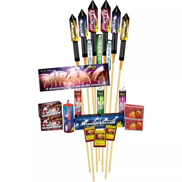 Das Action-Sortiment mit jeder Menge Nervenkitzel! Unter anderem mit 9 Raketen und unzähligen Sprüh-, Knall- und Blitzeffekten.