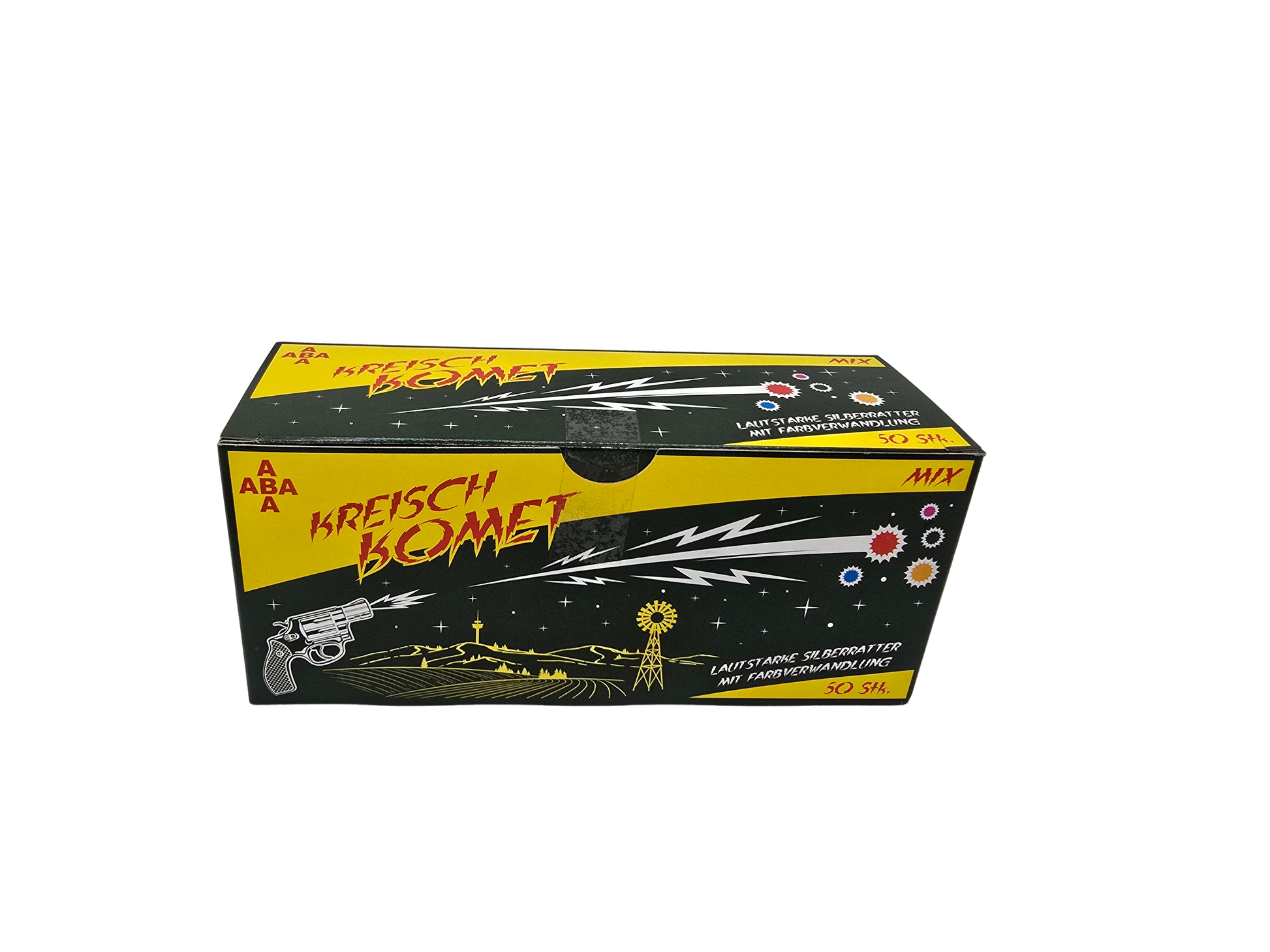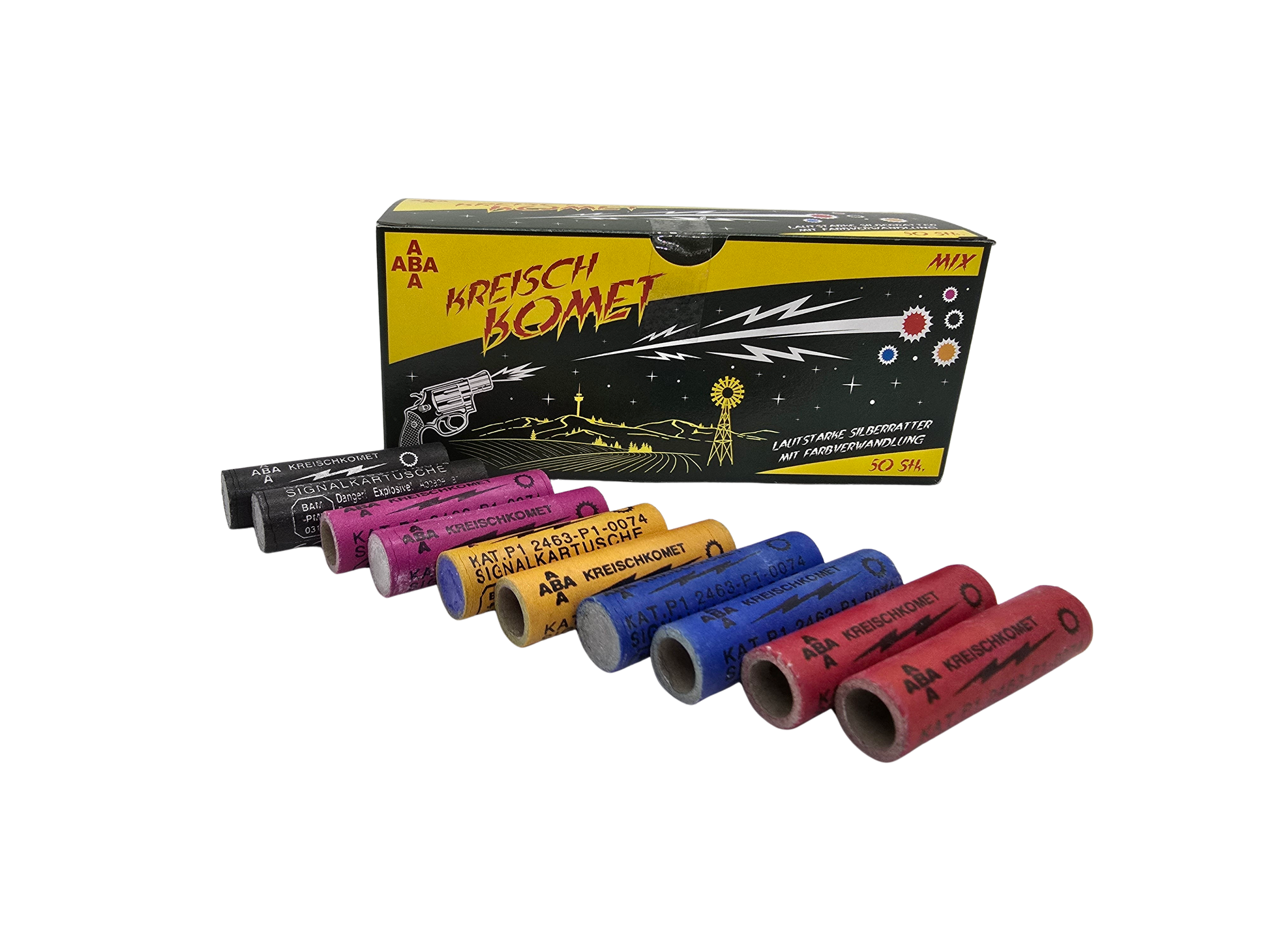 Raketenpfeifgeschosse mit extra lautem Silberrater mit Farbverwandlung - hohe Steigfähigkeit. Zugelassein in PMI & P1. 5-fach Sortiert: