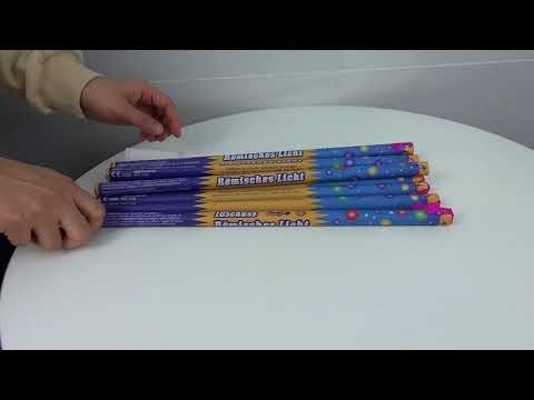Klassische Römische Lichter im 10er Pack, mit je 10 im Wechsel geschossenen Leuchtkugeln in Violett, Gelb, Blau, Grün und Rot. Im Gegensatz zu den meisten aktuellen Römischen Lichtern ist der Außen- und Innendurchmesser noch deutlich größer, zudem hat in der Regel bereits der erste Schuss eine ordentliche Steighöhe, und es sind wie früher 5 Farben statt nur Rot und Grün enthalten.