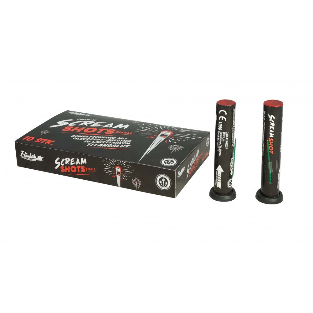 Bombettenrohr mit silberpeif-Aufstieg zu lautstarkem Titansalut. 10 Stück pro Schachtel.